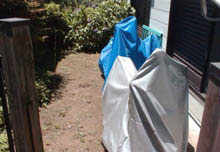 引っ越しを機に、「サイクル・ハウス」を建てました! それまで室内保管だったGT/GRを露天にさらす訳にもゆかず、かといってシャッター付ガレージを借りるほどのゆとりもありませんので、これが最善の策です。ハウスの購入・組立にあたっては、先駆者であるあつしさんや茂さんからいろいろとアドバイスを頂きました(thanks!!!)。 ポイントはこうです。 ・サイズの選定の際は高さにゆとりのあるものを選ぶこと。 ・天日にさらすとシートの耐久性がないので、 ブルーシートなどでくるむこと。 ・湿気対策のためコンパネなどを敷く。 ・強風対策のため、要所要所に太めの針金で補強を入れること。 なるほど、なるほど。実際に使っていないと判らない、 有難いアドバイスです! 購入先は、茂さんに教えていただいたDIY店でした。 「他にサイズはないのですか?」 と店員さんに聞くと、 「他メーカーのものもあります。」 と言って見せてもらったカタログから、自宅の庭にちょうど良いサイズ(開口1,360mm×高さ1,680mm×奥行1,810mm)を注文しました。 商品が取り寄せのため、待つこと5日。 入荷の連絡があり、同時に地面に敷くための「すのこ」(コンパネの代わり)と、塩ビの養生と、ゴムマットを購入。あと、小物では針金やアンカーに使えそうな杭を数本購入しました。 これで準備万端です!!! とある日曜日。 ようやく自由な時間ができたのでいよいよ建設開始です。 まずは建設予定地の地ならしから。 仮にすのこを敷いてみて、浮いたりしていないかを見ながら 地面を平らにならします。 「さあ、組み立てるぞ!!!」と意気込んでいると、 田中@RDさんが遊びにいらっしゃいました。 内心、これ幸いと思ったかどうかは私の胸のうちにしまっておくとして(笑)、田中@RDさんに手伝ってもらいながら組み立て始めました。 最初、説明書を理解するのに戸惑っていたりしましたが、田中@RDさんは過去にはあつしさん宅のハウスも組立を手伝ったことがあるとのこと。あっという間に骨が組みあがりました。 しかもテント張りも手馴れてらっしゃるので、アンカーの打ち込み方も指南していただきながら順調に組んでゆきました。 シートのほうは、2〜3年の耐用年数があり、また張り替え用が 別売されているそうなので、あえて何も対策していません。 (というか、予算が無かったのね・・・。) シート張りにはインシュロック(結束バンド、ね。)が大活躍! これならほどける心配もないし、重宝です。 床は、私の車ではコンパネを買って帰ることができなかったので、 代わりにすのこを敷きました。 すのこの上には5mmほどの厚さの養生用の樹脂シートを 買ってきて敷きました。 さらにその上に滑り止めマットを敷いて、ビス止めしています。 建設開始から半日ほどで、無事に竣工いたしました!!! 事前にあつしさん、茂さんからいろいろと教えていただいて、十分な準備と現場調査のおかげで問題も無く、GT/GRの2台が入居しました。 ほんと測ったように、てゆーか、測ったんですけど(笑)、2台ぴったりのサイズです。梅雨になる前に何とか入居させることができてほっとしています。 高さの方は、自称身長170cmの私だと少し天井に頭が着いてしまいますが、中で作業しないつもり・・・(ホントか???)なので十分な高さかなあ、と思っています。 炎天下のなか手伝っていただき、田中@RDさんありがとうございました!こんどはもう手伝わせたりしませんので(笑)、またゆっくり遊びにいらしてください!! |