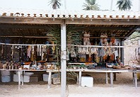 (右)浜辺にある土産物店。ビーズアクセサリーが充実