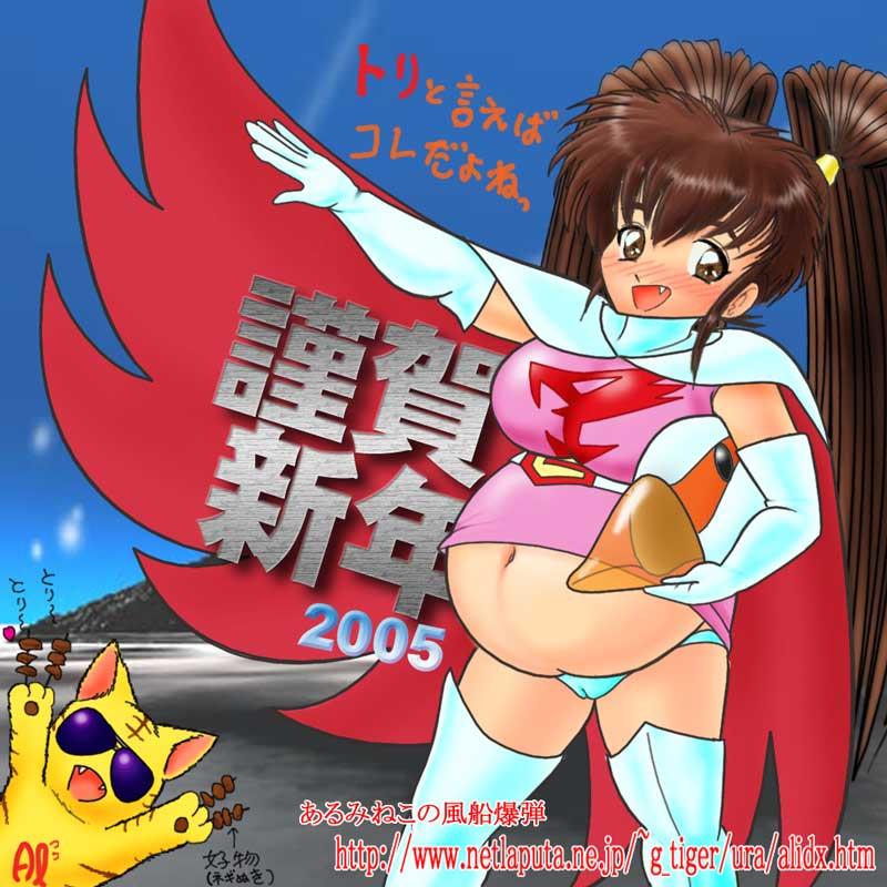 | あけおめ!2005年だよっ あけまして、おめでとうございます。 年月の過ぎるのは早いもので、このサイトももう8年目突入です。 酉年…鳥をモチーフにしたキャラクターは数多くあれど、いち早く萌え要素に着手した“白鳥のジュン”を忘れることはできませんよね。 なんたって、超ミニスカ+オーバーニーの絶対領域ですよ!(絶対領域:ミニスカ⇔ニーソの間) ガッチャマンって、低年齢層にはわからないかな? てゆーか年齢制限?(←モア殿はええっちゅーの) (2005/01/01)…とゆー事にしといてね | ||