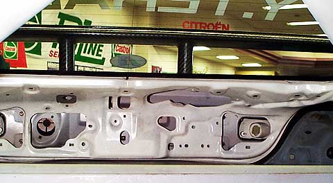 後ろを見ると、全ての内装は取り除かれ、徹底した軽量化がなされている。