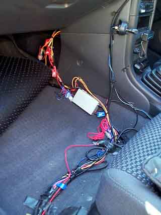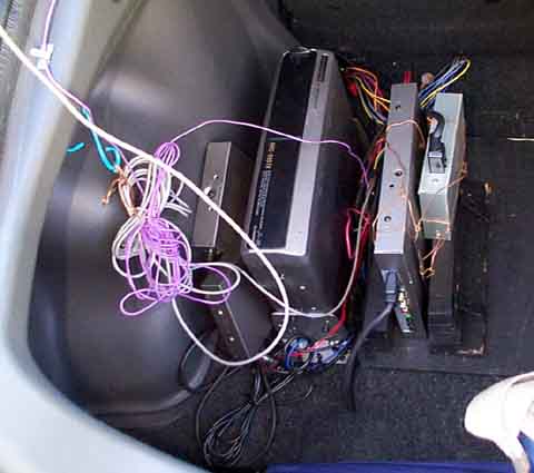 CDオートチェンジャやカーナビ類、全て自分で配線しています。なかなか激しい状況ですね。