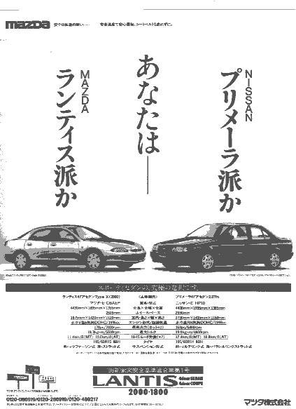 Mazdaは、たった1回だけ雑誌にランティスの比較広告を掲載している。