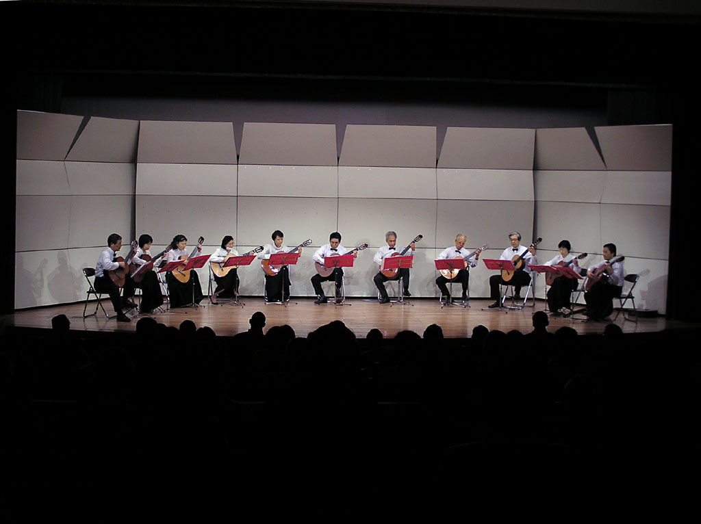 阿南さんのギター演奏会の写真。向かって左端が阿南さんです。こんなに小さな映像でも、人柄が漂ってくるものですね。
