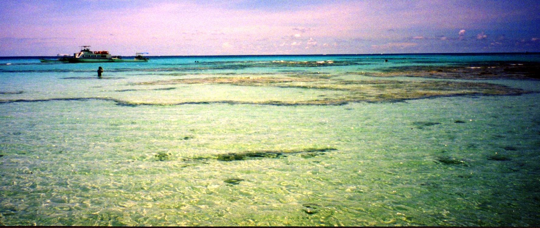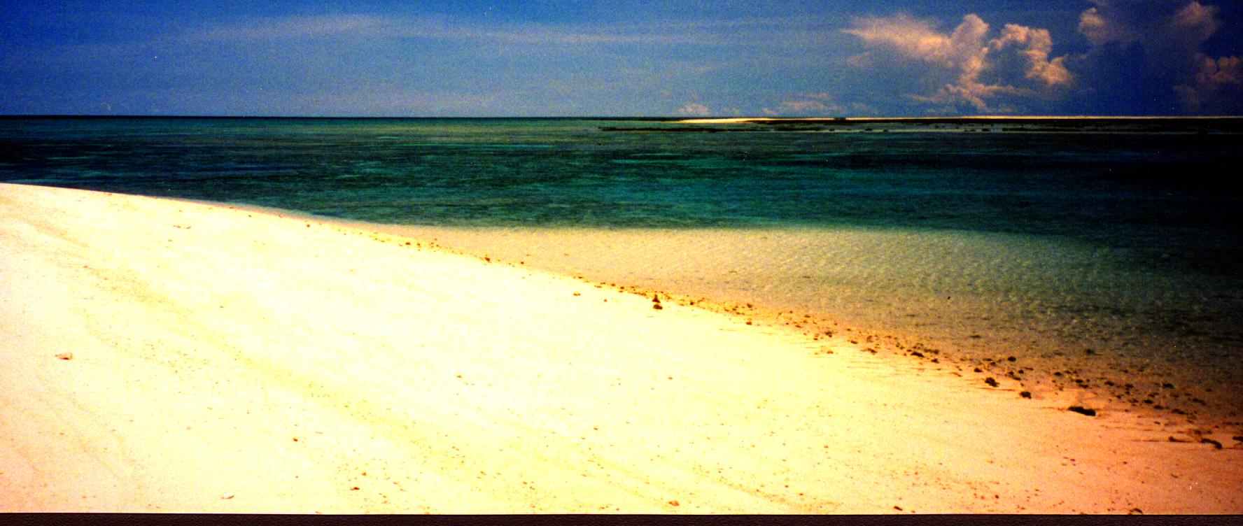 砂州なので、潮の干満により、波打ち際が大きく変化します。午前10時に着いたときには、はるか水面下にあったテーブル珊瑚が、1時ごろには、水面すれすれになっていました。潮の干満の差は、2m以上あるでしょう。