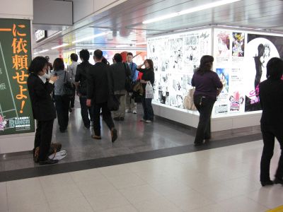 3.「AH」巨大コミックギャラリー →電照シートでAHを一話まるごと掲示。