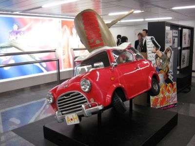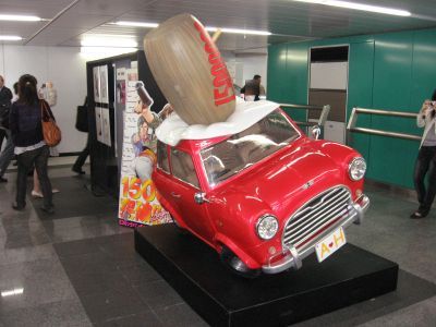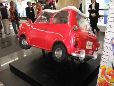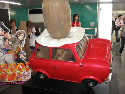イベント用描き下ろしイラストを元に作成された、ミニクーパー&1500万tハンマー巨大フィギュア。