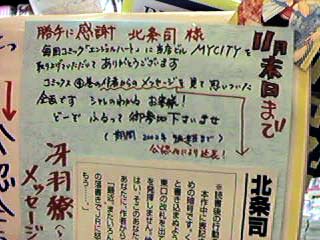 MY CITYの6階。リョウと香瑩の立て看板が人の目を引く。
