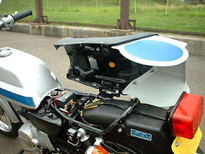 シートカウルも、欠けをパテで埋めて筆塗りのタッチアップを施しています。