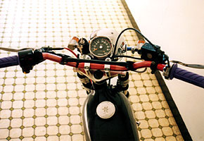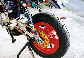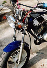 アップハンドルにしたため、ブレーキホースはTZMのノーマルのままでは長さが足りませんので、TZM用ロングタイプのステン・メッシュホースに交換しています。