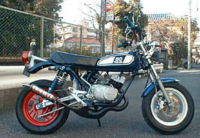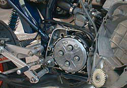 バイク屋さんにミニトレを持ち込んでドリブンギヤを外してもらい、無事にギヤ,ドライブを組み込み完了しました。しかも、工賃はタダ!ありがと〜!! ○富オート・金沢店!!!
