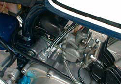気を取り直してハウジングASSY、ストッパを組み付けて、タコメータケーブルを装着し、ミッションオイルを注入しました。 |