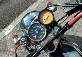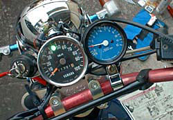 このタコメータ、本当はバックライトが点灯するようにもなっているのですが、ここでは配線作業していません。 |