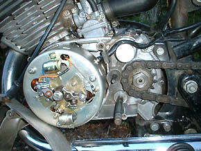 今日はHX君のクラッチワイヤーをメンテナンスするために左側ケースカバーを外しました。