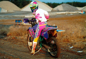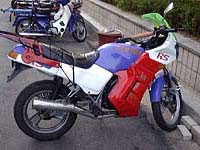 GPXで事故ったあと、もう公道で無茶するのは危ないと思ったから。当時住んでいた近くにオフロードコースがあったから。後輩がレースをやっていて、オフロードを勧められたから。TVでスーパークロスのレースを見て、興味を持ったから。 納車の頃はまだ骨折した足が完全に治っておらず、杖をついていたので、バイク屋からは後輩に乗って帰ってもらった。 本気でレースをしようと、何度かコースに通った。MFJのライセンスも取った。初めてジャンプした時は、峠でひざを擦った時ぐらいに感激した。ウィッシュボードを止まらずにクリアした時も。 しかし、転勤になって近くに練習場がなくなってからはコースへは行っていない。 KDXは街乗り用になってしまった。今では高速向けセッティングになっている。 〜おもな改造点〜 ・RenthalのJ.ワード・レプリカハンドル 〜これはお勧め!これに変えたら、フロントがすごく軽くなった! ・アールズのメッシュ・ブレーキホース ・R.S.Vチャンバー&サイレンサー 〜音がいい!!! ・F、Rフェンダー加工 〜短くカット ■Kawasaki KDX125SR(1991) エンジン:水冷2サイクルクランクケースリードバルブ単気筒 排気量:124cc ボア&ストローク:56.0×50.6mm 圧縮比:8.0 最高出力:22ps/9,500rpm 最大トルク:1.9kg-m/8,000rpm 始動方式:プライマリキック 点火方式:C.D.I クラッチ:湿式多板 ミッション:6速 全長:2,115 全幅:855 全高:1,190 軸距:1,395mm 車両重量:104kg タンク:9.0L タイヤ:F・70/100-21 44P R・4.10-18 4PR 価格:33万5千円 |