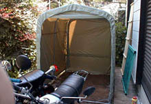 引っ越しを機に、「サイクル・ハウス」を建てました! それまで室内保管だったGT/GRを露天にさらす訳にもゆかず、かといってシャッター付ガレージを借りるほどのゆとりもありませんので、これが最善の策です。ハウスの購入・組立にあたっては、先駆者であるあつしさんや茂さんからいろいろとアドバイスを頂きました(thanks!!!)。 ポイントはこうです。 ・サイズの選定の際は高さにゆとりのあるものを選ぶこと。 ・天日にさらすとシートの耐久性がないので、 ブルーシートなどでくるむこと。 ・湿気対策のためコンパネなどを敷く。 ・強風対策のため、要所要所に太めの針金で補強を入れること。 なるほど、なるほど。実際に使っていないと判らない、 有難いアドバイスです! 購入先は、茂さんに教えていただいたDIY店でした。 「他にサイズはないのですか?」 と店員さんに聞くと、 「他メーカーのものもあります。」 と言って見せてもらったカタログから、自宅の庭にちょうど良いサイズ(開口1,360mm×高さ1,680mm×奥行1,810mm)を注文しました。 商品が取り寄せのため、待つこと5日。 入荷の連絡があり、同時に地面に敷くための「すのこ」(コンパネの代わり)と、塩ビの養生と、ゴムマットを購入。あと、小物では針金やアンカーに使えそうな杭を数本購入しました。 これで準備万端です!!! とある日曜日。 ようやく自由な時間ができたのでいよいよ建設開始です。 まずは建設予定地の地ならしから。 仮にすのこを敷いてみて、浮いたりしていないかを見ながら 地面を平らにならします。 「さあ、組み立てるぞ!!!」と意気込んでいると、 田中@RDさんが遊びにいらっしゃいました。 内心、これ幸いと思ったかどうかは私の胸のうちにしまっておくとして(笑)、田中@RDさんに手伝ってもらいながら組み立て始めました。 最初、説明書を理解するのに戸惑っていたりしましたが、田中@RDさんは過去にはあつしさん宅のハウスも組立を手伝ったことがあるとのこと。あっという間に骨が組みあがりました。 しかもテント張りも手馴れてらっしゃるので、アンカーの打ち込み方も指南していただきながら順調に組んでゆきました。 シートのほうは、2〜3年の耐用年数があり、また張り替え用が 別売されているそうなので、あえて何も対策していません。 (というか、予算が無かったのね・・・。) シート張りにはインシュロック(結束バンド、ね。)が大活躍! これならほどける心配もないし、重宝です。 床は、私の車ではコンパネを買って帰ることができなかったので、 代わりにすのこを敷きました。 すのこの上には5mmほどの厚さの養生用の樹脂シートを 買ってきて敷きました。 さらにその上に滑り止めマットを敷いて、ビス止めしています。 建設開始から半日ほどで、無事に竣工いたしました!!! 事前にあつしさん、茂さんからいろいろと教えていただいて、十分な準備と現場調査のおかげで問題も無く、GT/GRの2台が入居しました。 ほんと測ったように、てゆーか、測ったんですけど(笑)、2台ぴったりのサイズです。梅雨になる前に何とか入居させることができてほっとしています。 高さの方は、自称身長170cmの私だと少し天井に頭が着いてしまいますが、中で作業しないつもり・・・(ホントか???)なので十分な高さかなあ、と思っています。 炎天下のなか手伝っていただき、田中@RDさんありがとうございました!こんどはもう手伝わせたりしませんので(笑)、またゆっくり遊びにいらしてください!! |