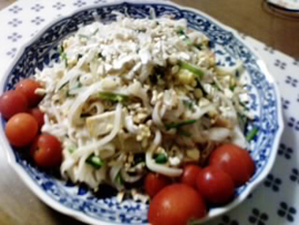 ベーシッククラスで習ったメニューでは、パッタイやキュウリのサラダもよく作ります。 |