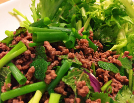 正月料理に飽きて、ラープを食べたくなり、年末に習ったガイヤーンとラープを作りました。
