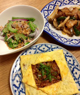 先日も、母の誕生日のお祝いにフルコースで「ゴーヤーのサラダ」「カイ ヤッサイ」「海老の辛い煮込み」などを作り、