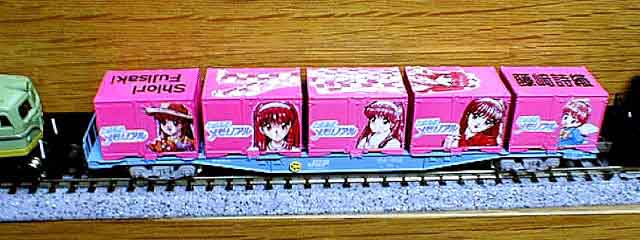 まず用意するモノですが、材料1,2の写真にあるカラーデカール(クリアー、白)、マークソフター、デザインナイフ、プラ棒、両面テープ、種車(今回はKATOのコキ104を使用)
