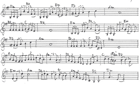 『妖狐王国』の挿入歌『王子沿線』の初稿。石井タカシさんの直筆です