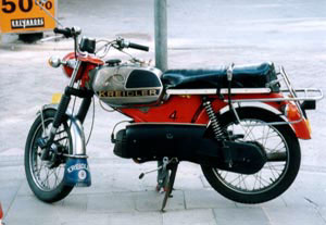 2 :SUZUKI ユーディミニ (2000/12/31) ただのファミリー・バイク。非力なスクーター(2.3ps!!!)。だけど、俺にバイクいじりの楽しさを教えてくれた。 最初、いくら頑張っても20km/hしか出なかった。チャリンコにも抜かれる遅さ。^^; 生まれて初めてバイクをいじった。ヘッドを開けて、カーボンを取って、プラグを変えた。 たったそれだけで、60km/h以上出るようになった!下り坂ではメーターを振り切った!!! ....それからバイクをいじる魅力に取り付かれた。俺にとっては忘れられないバイク。 ■SUZUKI ユーディミニ FY50(1978) エンジン:空冷2サイクルリードバルブ単気筒 排気量:49cc ボア&ストローク:41.0×37.8mm 圧縮比:6.5 最高出力:2.3ps/5,500rpm 最大トルク:0.37kg-m/3,500rpm 始動方式:キック ミッション:無段変速 全長:1,505 全幅:665 全高:925 軸距:1,070mm 車両重量:47kg タイヤ:F・2.50-10 R・2.50-10 価格:7万3千円 |