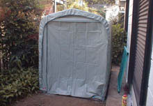 引っ越しを機に、「サイクル・ハウス」を建てました! それまで室内保管だったGT/GRを露天にさらす訳にもゆかず、かといってシャッター付ガレージを借りるほどのゆとりもありませんので、これが最善の策です。ハウスの購入・組立にあたっては、先駆者であるあつしさんや茂さんからいろいろとアドバイスを頂きました(thanks!!!)。 ポイントはこうです。 ・サイズの選定の際は高さにゆとりのあるものを選ぶこと。 ・天日にさらすとシートの耐久性がないので、 ブルーシートなどでくるむこと。 ・湿気対策のためコンパネなどを敷く。 ・強風対策のため、要所要所に太めの針金で補強を入れること。 なるほど、なるほど。実際に使っていないと判らない、 有難いアドバイスです! 購入先は、茂さんに教えていただいたDIY店でした。 「他にサイズはないのですか?」 と店員さんに聞くと、 「他メーカーのものもあります。」 と言って見せてもらったカタログから、自宅の庭にちょうど良いサイズ(開口1,360mm×高さ1,680mm×奥行1,810mm)を注文しました。 商品が取り寄せのため、待つこと5日。 入荷の連絡があり、同時に地面に敷くための「すのこ」(コンパネの代わり)と、塩ビの養生と、ゴムマットを購入。あと、小物では針金やアンカーに使えそうな杭を数本購入しました。 これで準備万端です!!! とある日曜日。 ようやく自由な時間ができたのでいよいよ建設開始です。 まずは建設予定地の地ならしから。 仮にすのこを敷いてみて、浮いたりしていないかを見ながら 地面を平らにならします。 「さあ、組み立てるぞ!!!」と意気込んでいると、 田中@RDさんが遊びにいらっしゃいました。 内心、これ幸いと思ったかどうかは私の胸のうちにしまっておくとして(笑)、田中@RDさんに手伝ってもらいながら組み立て始めました。 最初、説明書を理解するのに戸惑っていたりしましたが、田中@RDさんは過去にはあつしさん宅のハウスも組立を手伝ったことがあるとのこと。あっという間に骨が組みあがりました。 しかもテント張りも手馴れてらっしゃるので、アンカーの打ち込み方も指南していただきながら順調に組んでゆきました。 シートのほうは、2〜3年の耐用年数があり、また張り替え用が 別売されているそうなので、あえて何も対策していません。 (というか、予算が無かったのね・・・。) シート張りにはインシュロック(結束バンド、ね。)が大活躍! これならほどける心配もないし、重宝です。 床は、私の車ではコンパネを買って帰ることができなかったので、 代わりにすのこを敷きました。 すのこの上には5mmほどの厚さの養生用の樹脂シートを 買ってきて敷きました。 さらにその上に滑り止めマットを敷いて、ビス止めしています。 建設開始から半日ほどで、無事に竣工いたしました!!! 事前にあつしさん、茂さんからいろいろと教えていただいて、十分な準備と現場調査のおかげで問題も無く、GT/GRの2台が入居しました。 ほんと測ったように、てゆーか、測ったんですけど(笑)、2台ぴったりのサイズです。梅雨になる前に何とか入居させることができてほっとしています。 高さの方は、自称身長170cmの私だと少し天井に頭が着いてしまいますが、中で作業しないつもり・・・(ホントか???)なので十分な高さかなあ、と思っています。 炎天下のなか手伝っていただき、田中@RDさんありがとうございました!こんどはもう手伝わせたりしませんので(笑)、またゆっくり遊びにいらしてください!! |