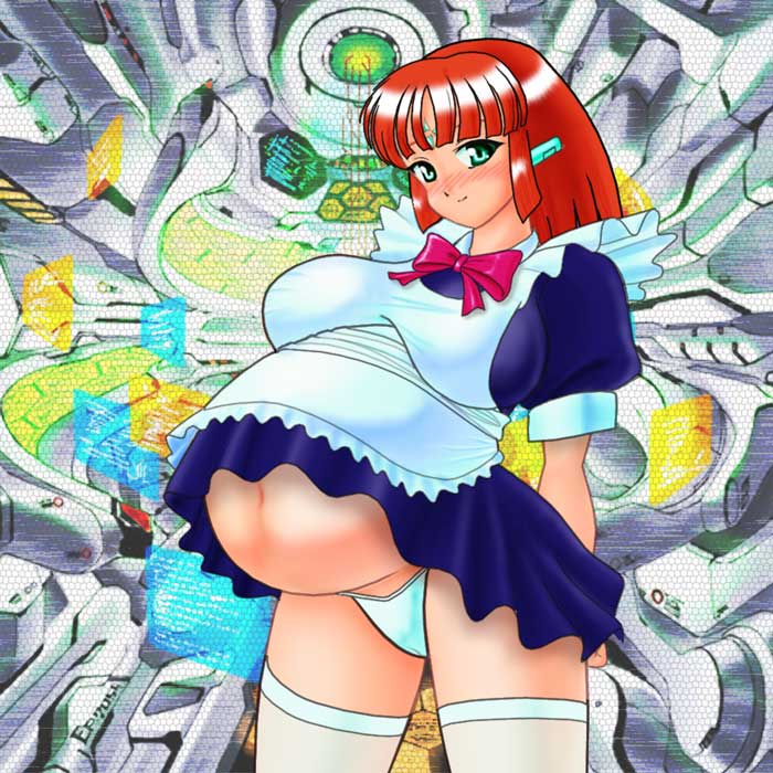 | 掲示板リクエストです。大変遅くなりました。m(_ _)m! 今回も、絵柄を少し変えてみる実験だったりして… 遠い将来でしょうけど、メイドロボはほぼPC並みに普及してるんでしょうね 当然、多岐に渡るニーズに対応するようになるのは自然な事でしょう。【オマケ:カバー排除ver】 さて、今回の絵には、隠し要素が1つ いつもなら赤文字でいれているサインですが、今回は背景の一部に隠してあります。 上手く見つけられた人はご一報下さい、正解者は最優先でリクエスト受けます。 (2004/07/01) | ||