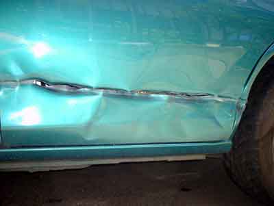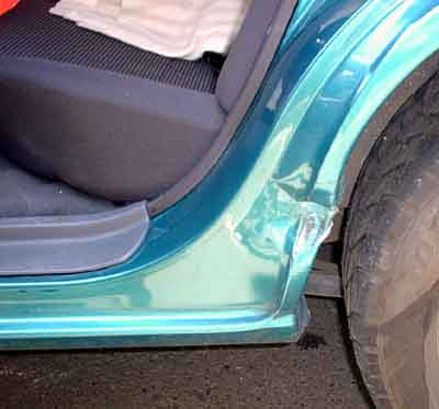 リアフェンダーの複雑な造形の所までやられています。「・・直るんだろうか」本気でブルー入ります。