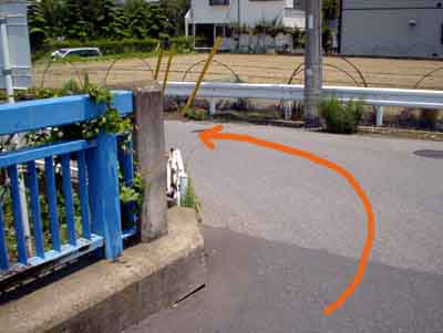 左折進行方向から見た図です。左折時、ランティスは右ハンドルなので、こんな罠が待ち構えているとは全く気づきません。