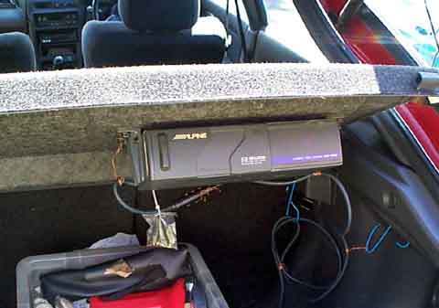 CDオートチェンジャやカーナビ類、全て自分で配線しています。なかなか激しい状況ですね。