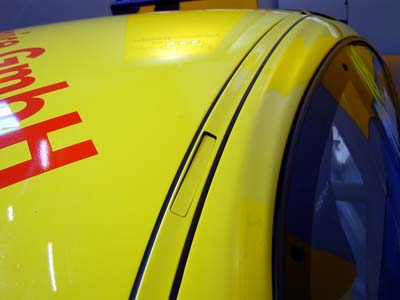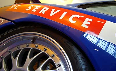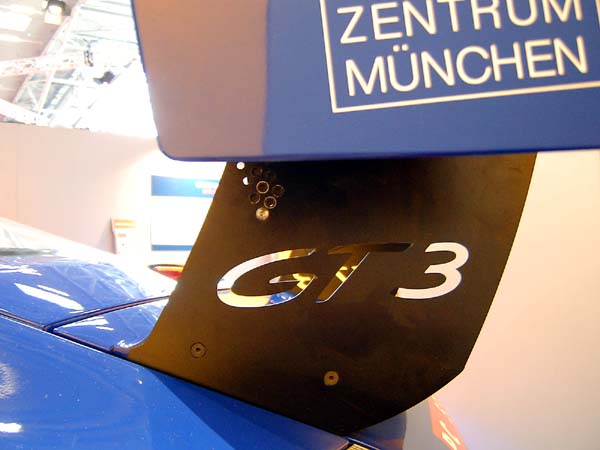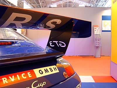 市販車(2004年モデルRS)とは別物のやたらカッコイイリアウィング。GT3の文字は穴があいて