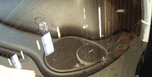 歴戦のフロントガラスはすごいことになっています。。。合わせガラスって丈夫なんですね。
