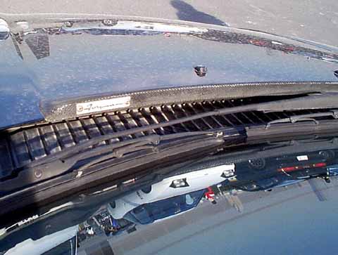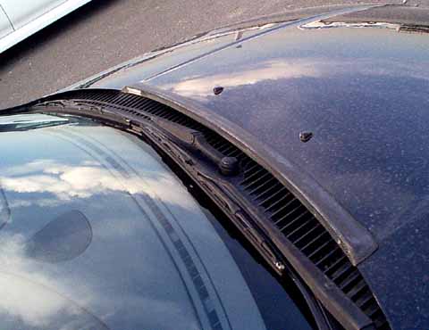 フロントガラス前のボンネット上に、空力パーツが取り付けてあります。
