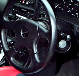 ユーノス500に設定されていた、MOMOの本皮巻きステアリング。