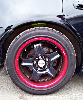 黒にレッドアクセントのホイールが精悍な近藤車。