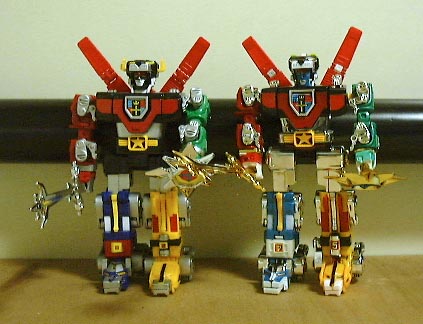 画像だけではかなりわかりづらいと思いますが、画像左側が「トレンドマスター社製のミニサイズ合体ボルトロン」右側が中国製の「LIONBOT」です。
