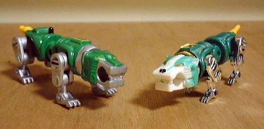 ほとんど別物の足ライオン、中国製の物は頬部分が別パーツになっており合体システムや背中の武装