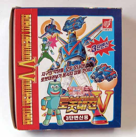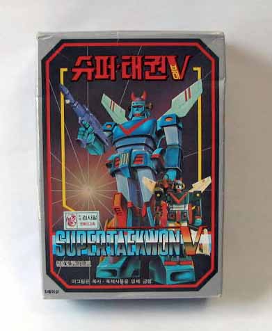 今回紹介するのは韓流スーパーロボットの元祖「ロボット テコンV(ROBOT TEKWON V)」の玩具です。「韓流スーパーロボット」のコーナーで紹介しようか迷ったんですが、玩具的にはいんちきテイストの濃い物が多いのも事実ですのでこちらで紹介する事にしました。