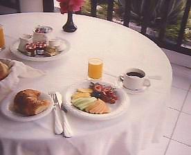 アーチのテラスの向こうにはエメラルドの海 テラスでの朝食
