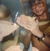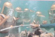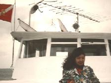 散歩するスポットまではボートで向う この写真のようにみなんでバーを持つ