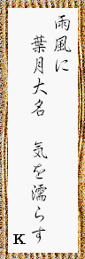 | Kさん、八月大名とはお百姓さんのことだそうですね。それに葉月をかけるとは...憎い。 |