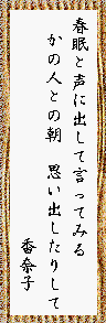 | 香奈ちゃん、夜明けとともに仕舞うのは早すぎないかい?そんなに慌てなくとも、きっと来るさ、香奈子の春。 |