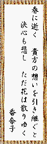 | 香奈ちゃん、「春に逝く」が哀しくて心が痛む。花は美しいけど、散るのもまた宿命か。 |
