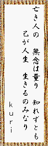 | kuriさんが香奈ちゃんの句に応えた一句。いいじゃない、そう、残された者はガンバッテ生きていくしかない。 |