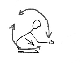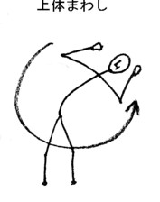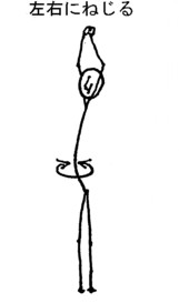 次に自分の背骨を見るようにして上体をねじる。(左右くり返す。)