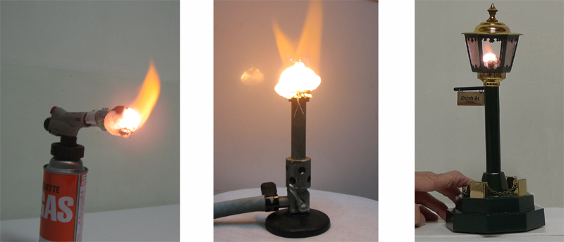 マントルさえ装着すれば、ガスは発光する。ガスを流して火の点く物は総て瓦斯灯化させることが出来る筈である。