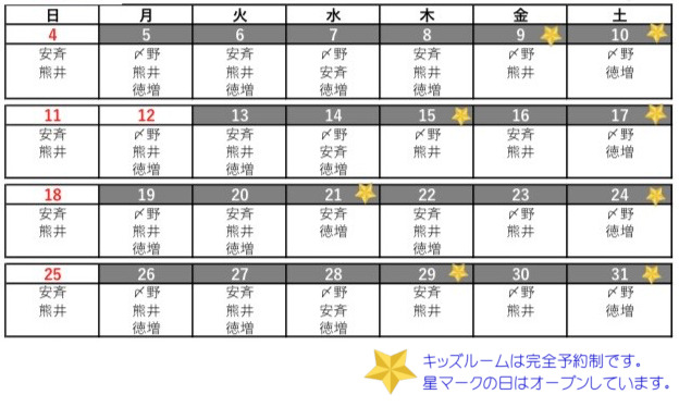 *出勤予定か変わる場合がございます。