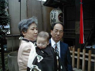 いっしょに写っているのは、おじいちゃんとおばあちゃんです。