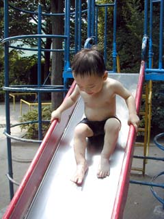 このところ、ボクの一番のお気に入りの遊びは滑り台。