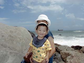 ここは、坂本竜馬っていう偉い人の記念像のある桂浜っていうところ。 パパは「啓輝も坂本竜馬みたいに立派な人間になるんだぞ」って言ってたけど、 あまり期待しないでね!?